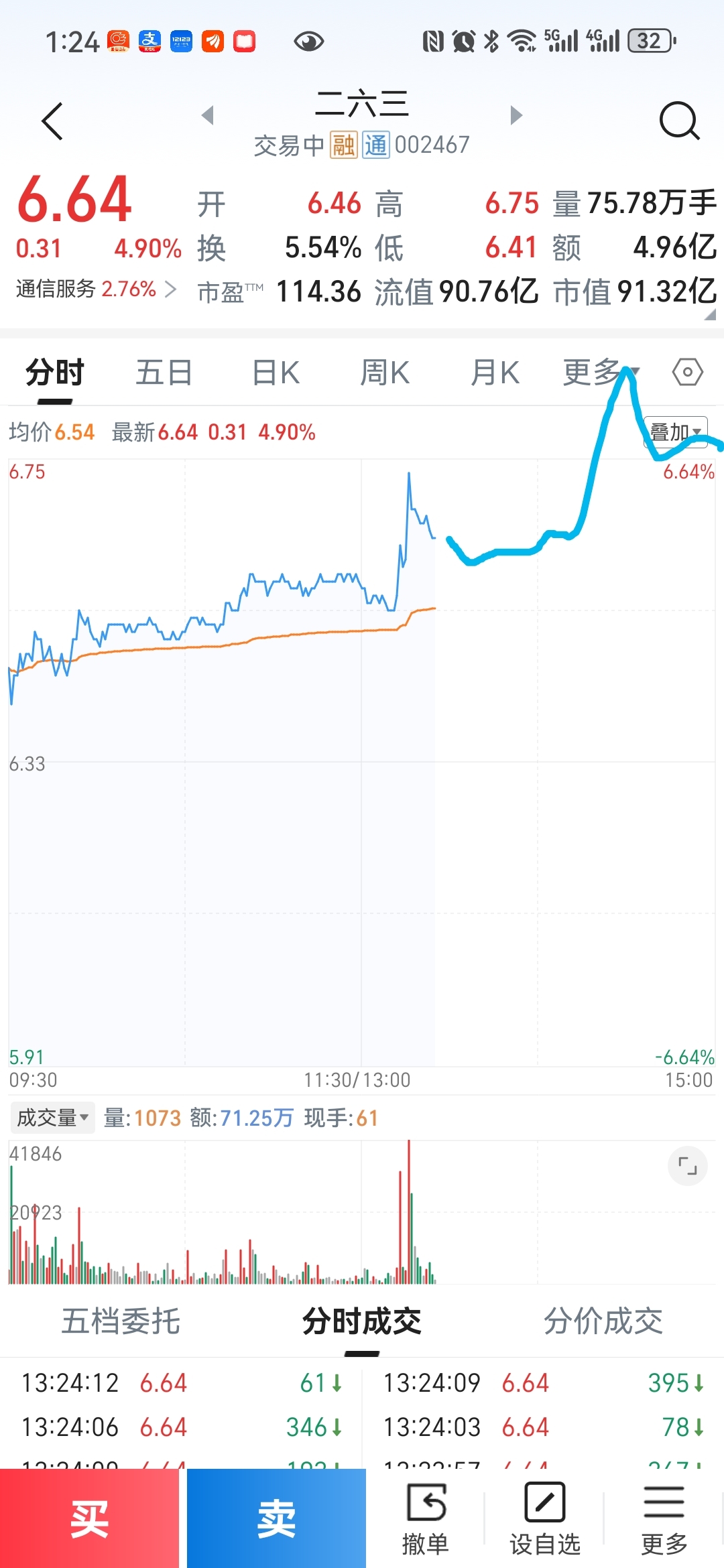 $二六三(SZ002467)$ 6.8