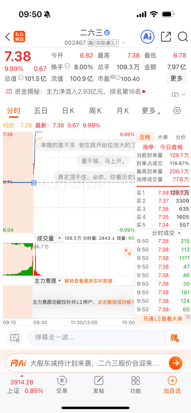 $二六三(SZ002467)$ 被洗出去了 全仓还是有点怕啊