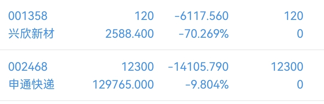 $申通快递(SZ002468)$ $义翘神州(SZ301047)$ $绿地控股(SH600606)$ 在大a炒股太难了,顾此失彼,本来申通快要回本,想着申通这么好的戴维斯三击股涨停后散户出货后,主力会拉升,我已经声明放弃戏耍申通绿地空头不发帖不评论,本来想专注的对付义翘空头,没想到申通主力今天大砸倒车接我,破了我10.77卖出的价格,又套了我十个点,只好放弃宣传义翘,等待申通砸破十元补仓,毕竟申通业绩好更安全,目前三支重仓股一共市值接近45万,加别的股一共70多万,连我这样的大户2025年都要卖点股过年,但是绿地亏损13点,义翘还亏30点,申通接近十个点亏损,大家说过年割肉哪支股?我要减持一万元过年花。