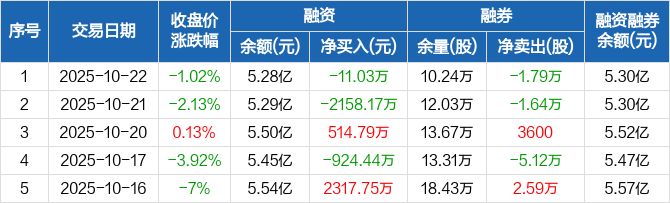 申通快递:融资净偿还11.03万元,融资余额5.28亿元(10-22)