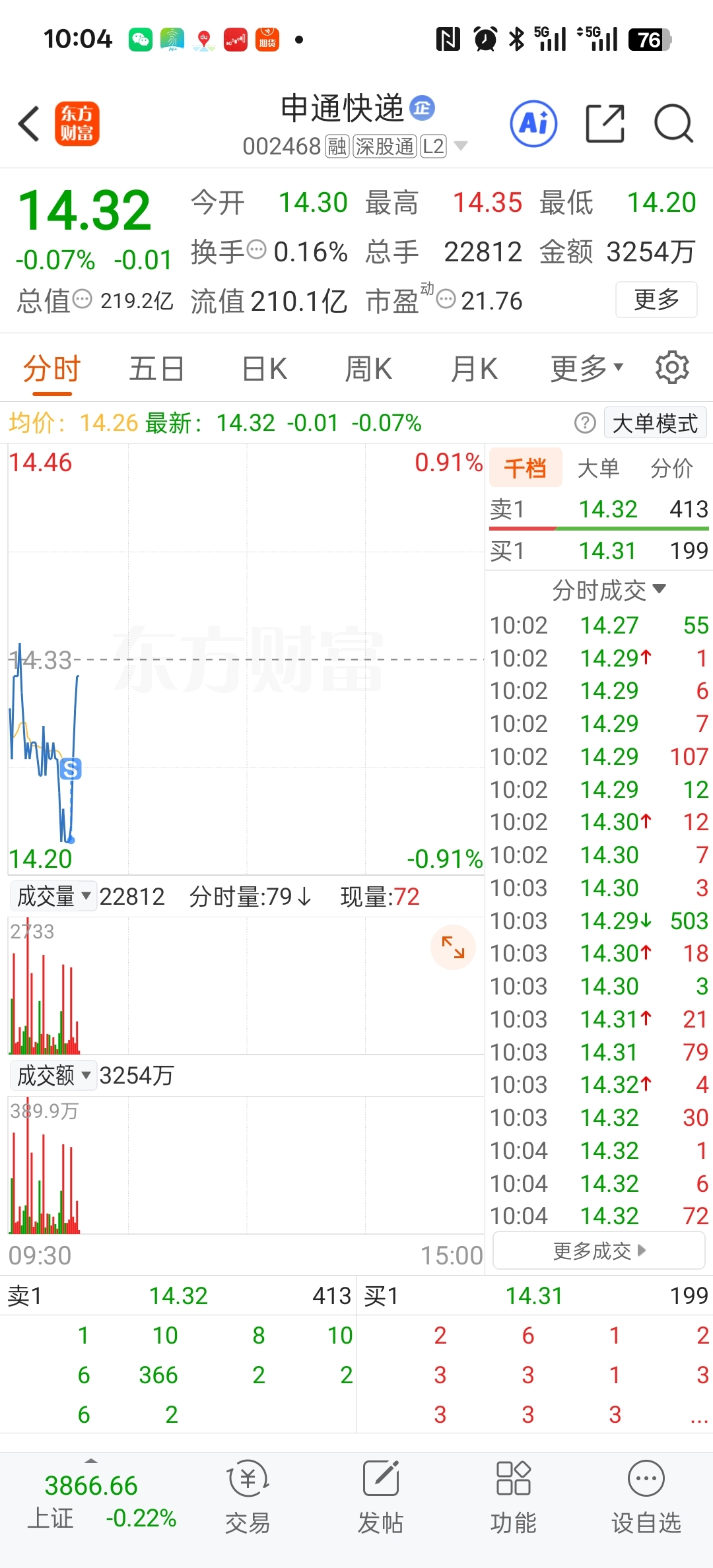 $申通快递(SZ002468)$ 我不卖主力不拉。牛逼