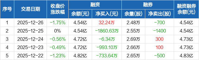 申通快递:融资净买入32.24万元,融资余额4.54亿元(12-26)