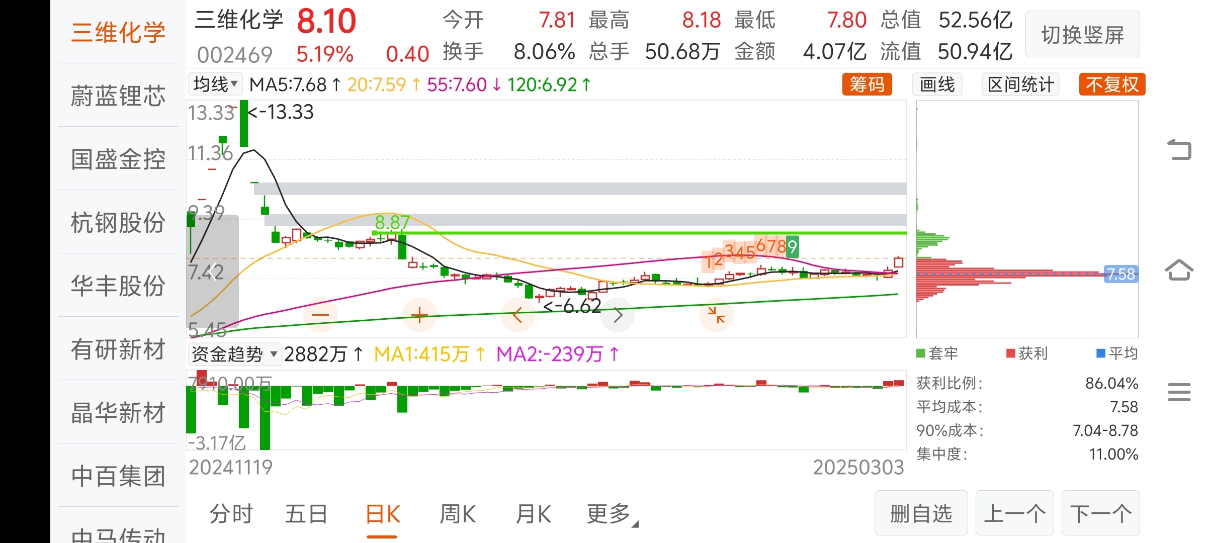 $三维化学(SZ002469)$ 下次来,这里压力位没有先手的可以看戏