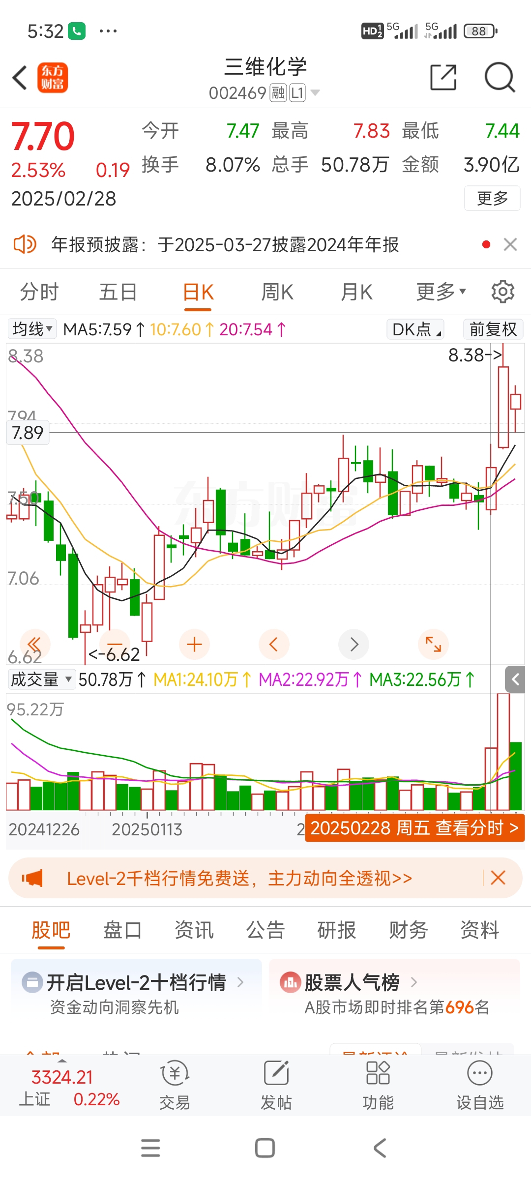 $三维化学(SZ002469)$ 大家有机会7.9就低吸。估计这几天还有,大家把握好。