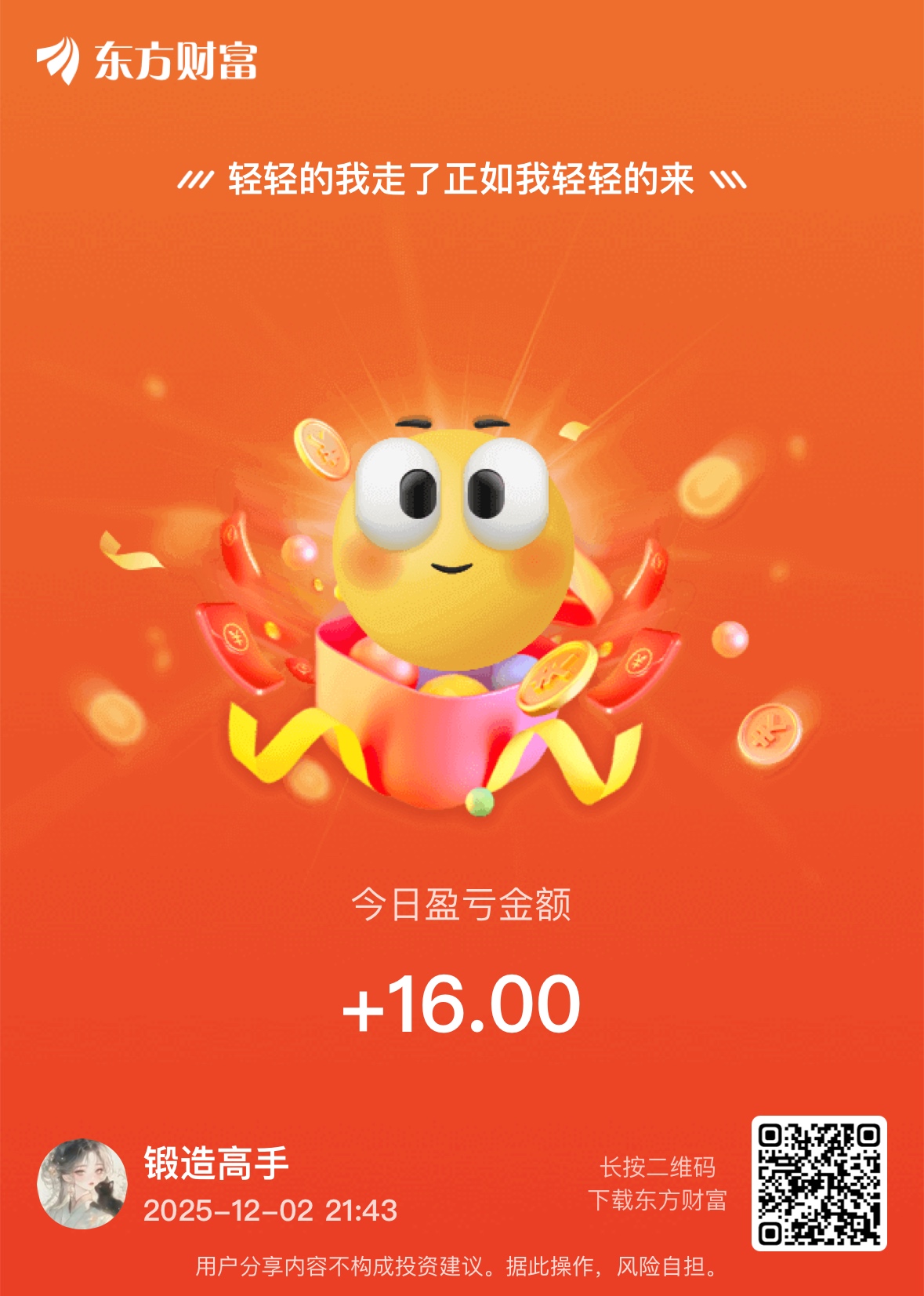 收盘怒赚16RMB可以买6个馒头和5瓶矿泉水,开心!