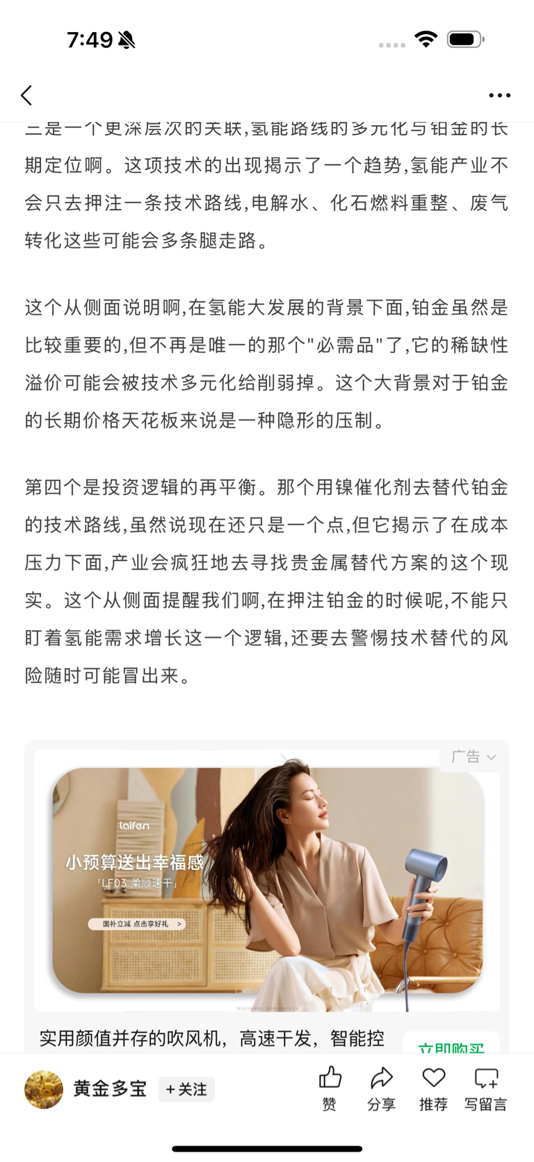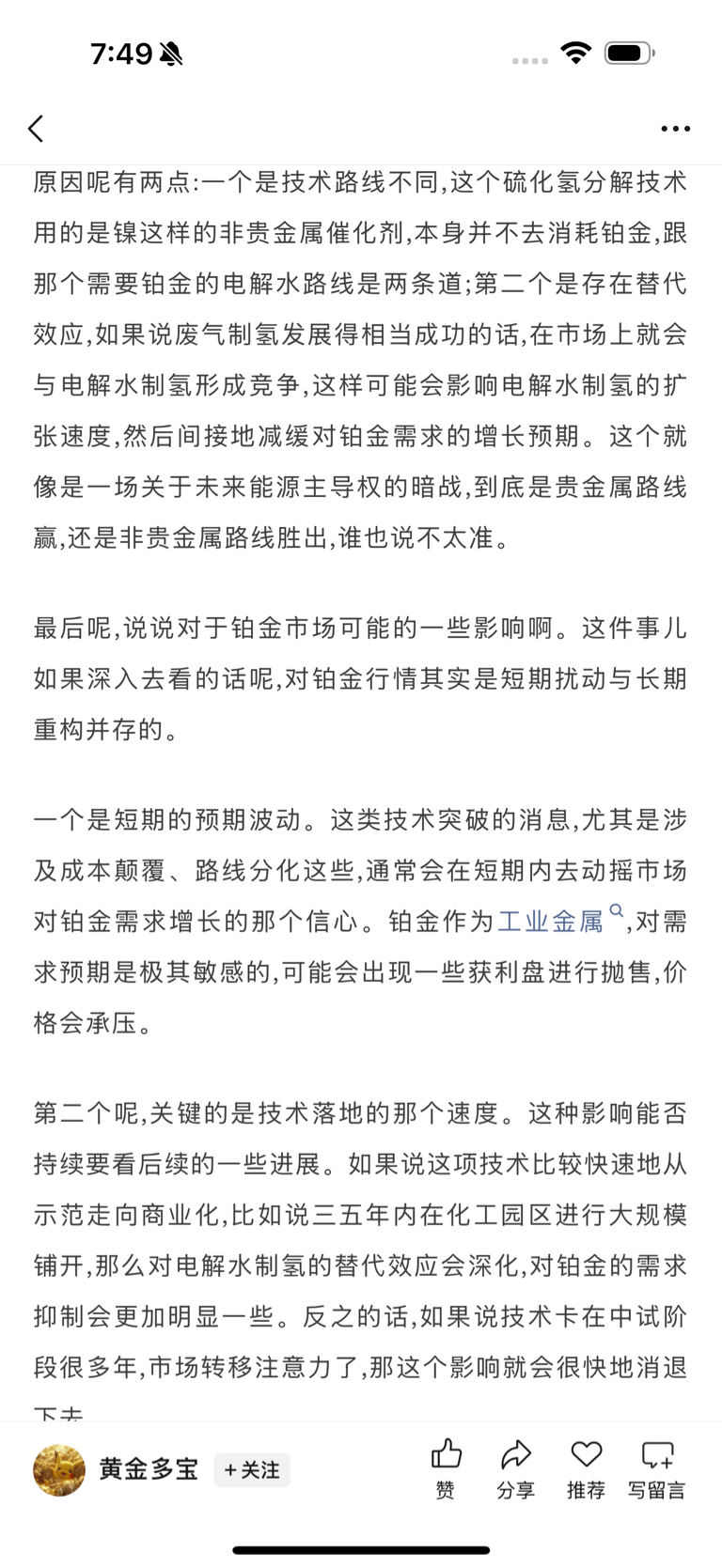 大家谁懂能给讲讲,抖音上博主说对铂金是利空,是不是技术路线发生变化了。如果真的脱