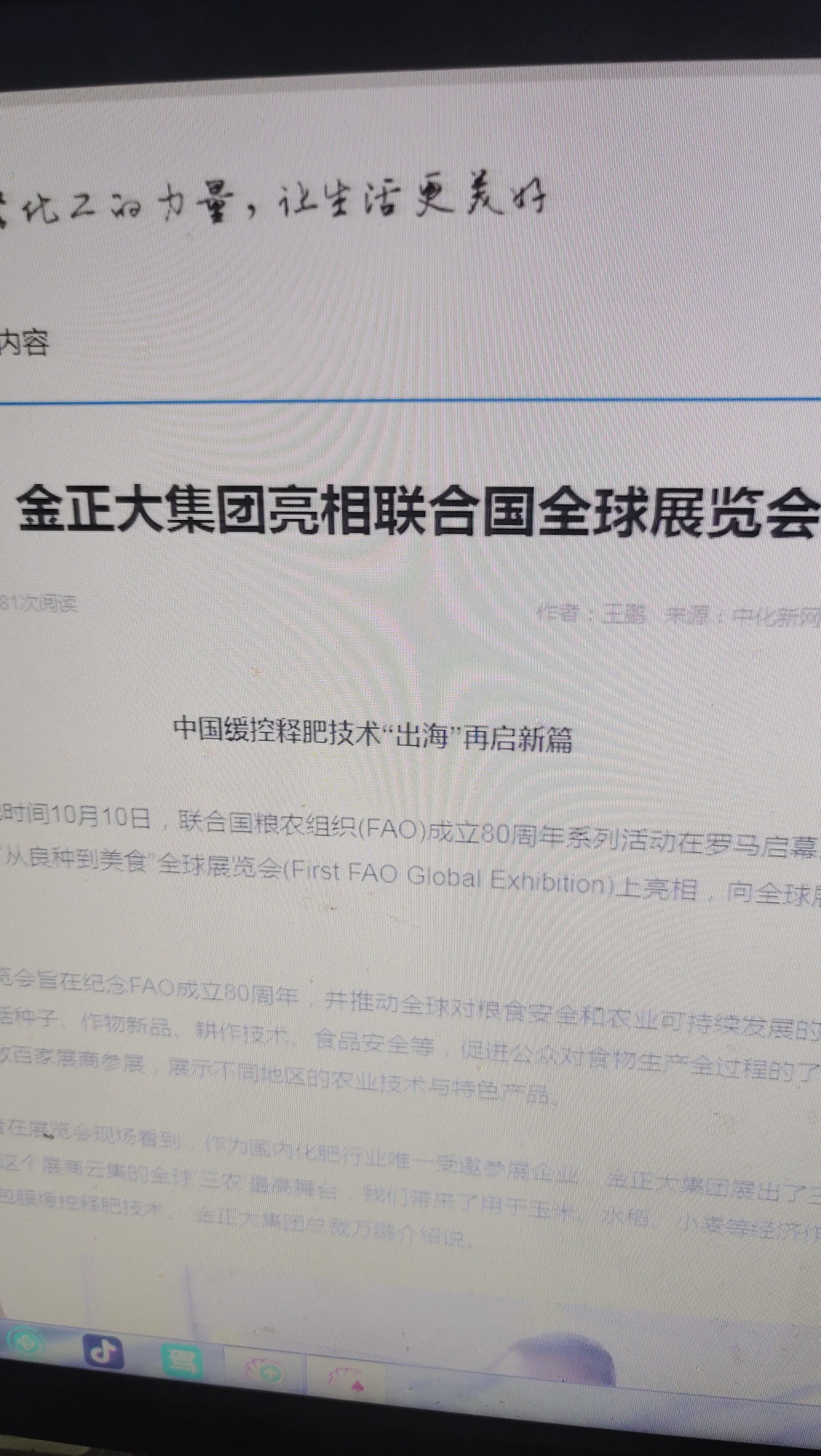 $金正大(SZ002470)$ 十月十号,金正大又跑到联合国骗人去了,