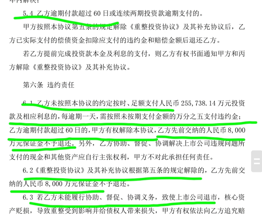 如图重整协议之协议解除,如果逾期超过60日或连续两期投资款逾期支付的,这两条都满足了,还是没人解决的话,那么吹哨人行动正式开启,立帖为证!!!欢迎提供其他线索,奖金平分!