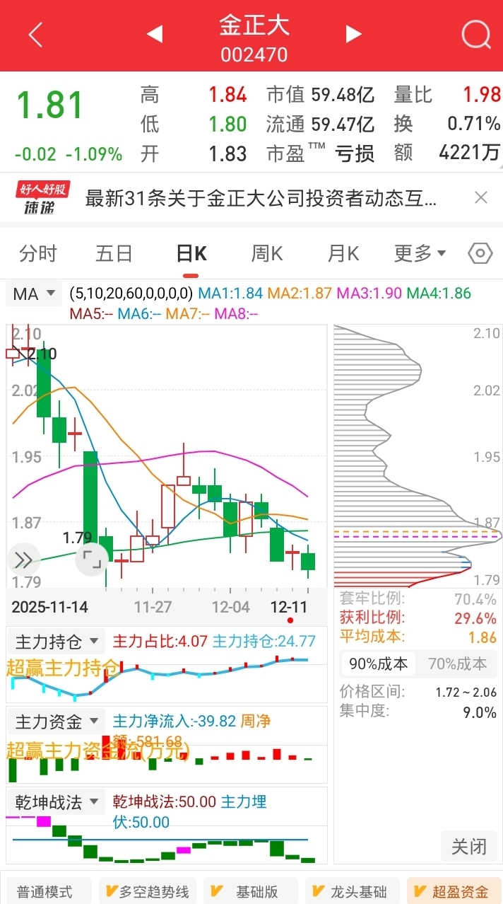 $金正大(SZ002470)$ 没主力,全是散户再护盘,连游资都没有,这股再抖音微信视频号,公共号吹牛是全世界第一