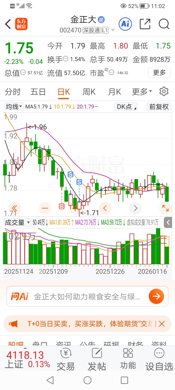 $金正大(SZ002470)$ 来一次,亏一次,还不如买老三板。