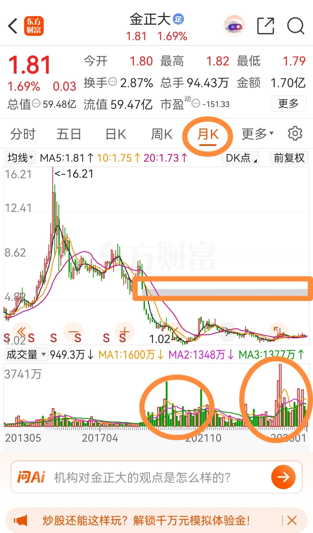 $金正大(SZ002470)$ 元芳,这个月线图你怎么看