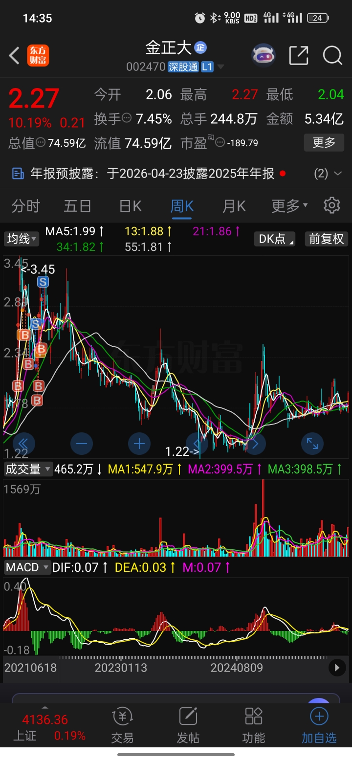 我勒个去,金正大都涨停了,几年前我刚入市那会接触的就是带星又带帽的金正大,后来他摘星又摘帽,可惜股价并没有多大的表现,当时还有很多熟人,不知道现在还在吗?时间过得真快啊,一转眼我也不再是曾经那么懵懵懂懂的少年,金正大的股价却一落再落。