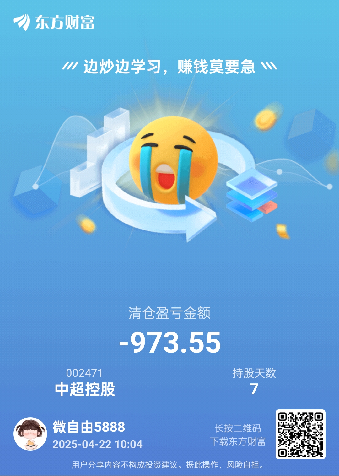 温馨提示: 1.根据《证券法》规定,禁止编造、传播虚假信息或者误导性信息,扰乱证券市场;2.用户在本社区发表的所有资料、言论等仅代表个人观点,与本网站立场无关,不对您构成任何投资建议。用户应基于自己的独立判断,自行决定证券投资并承担相应风险。《东方财富社区管理规定》