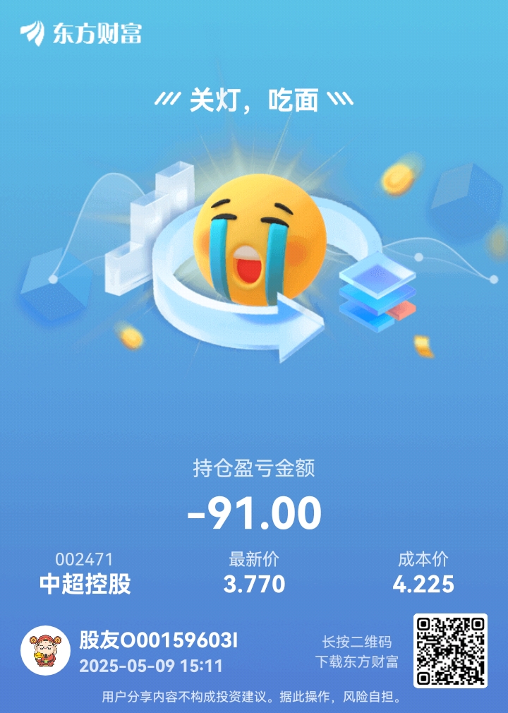 温馨提示: 1.根据《证券法》规定,禁止编造、传播虚假信息或者误导性信息,扰乱证券市场;2.用户在本社区发表的所有资料、言论等仅代表个人观点,与本网站立场无关,不对您构成任何投资建议。用户应基于自己的独立判断,自行决定证券投资并承担相应风险。《东方财富社区管理规定》
