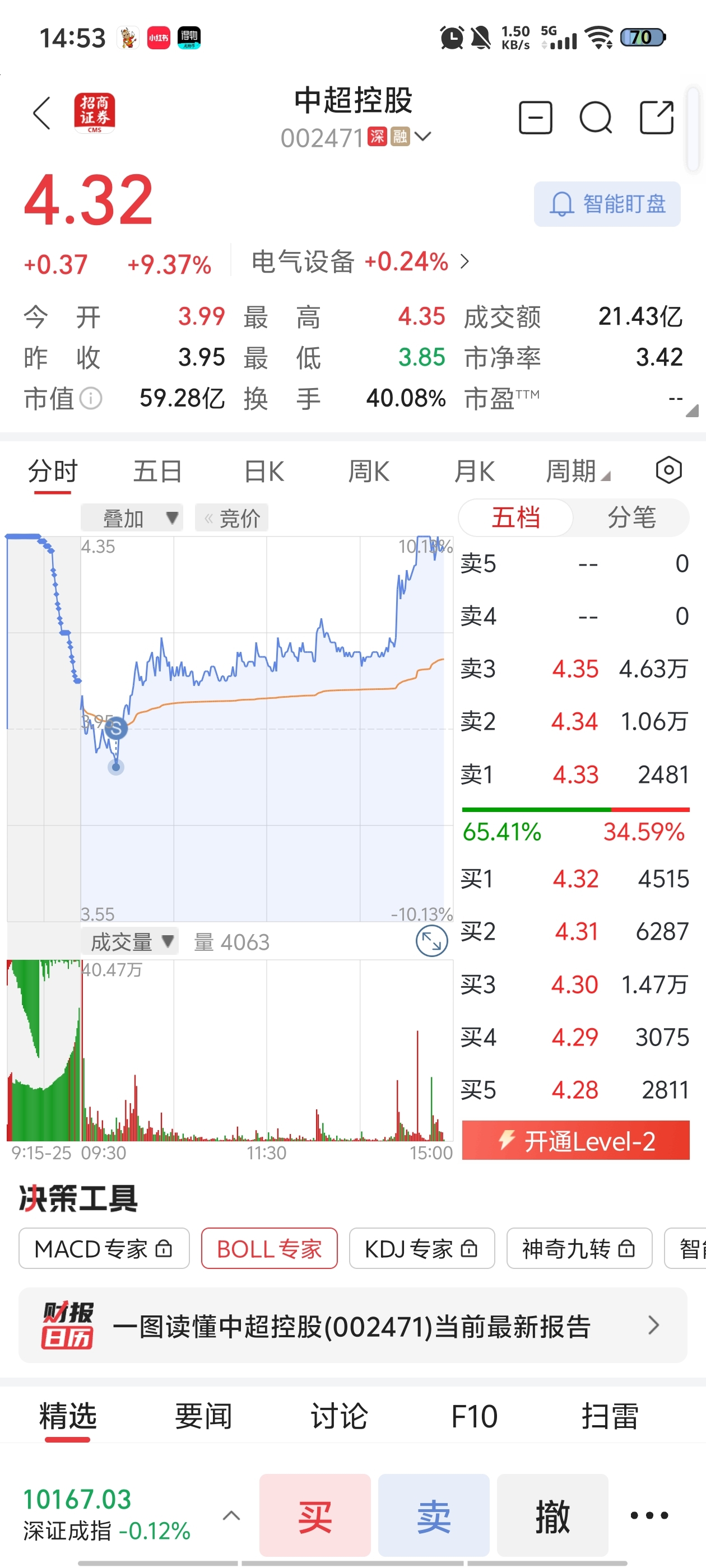 早盘开出来其实不符合我短线的节奏,果断卖掉再拉涨停也不后悔,弱转强的逻辑点根本没有搞懂,上周五其实已经走加速,早盘看得出来上周主力并不想在这里继续磨蹭,结果今天很多高标并没有机会进场,转头就继续做这个股。明天持续今天的节奏这股才能玩,假设化工板块出现回流迹象,这股大概率摁到水下