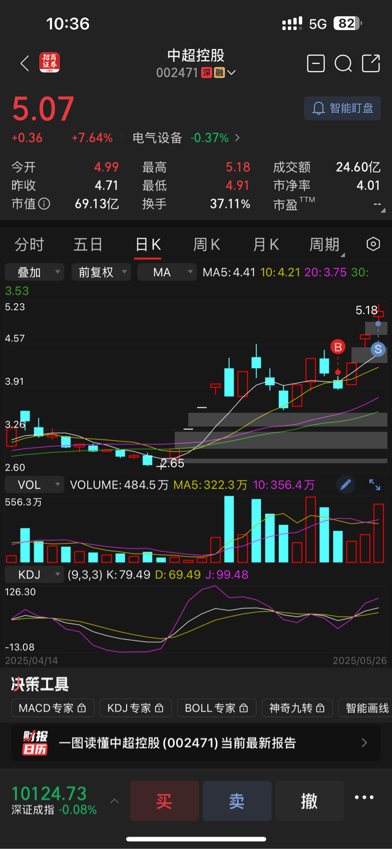 $中超控股(SZ002471)$ 量太大有出货的嫌疑,主力在自买自卖吸引跟风了,留下的发财,希望我的判断是错的