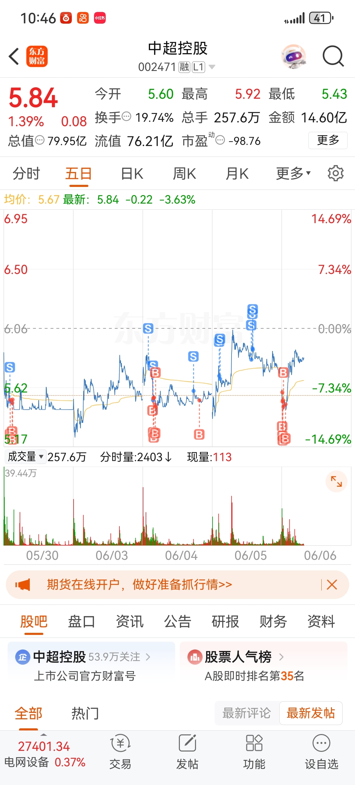 $中超控股(SZ002471)$ 我胡汉三又回来了