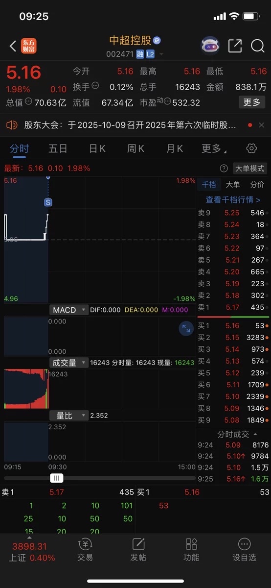 $中超控股(SZ002471)$ 开盘赚钱卖出