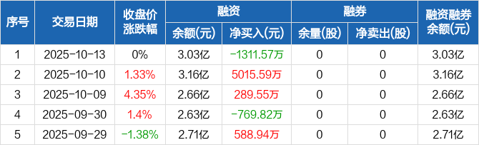 中超控股:融资净偿还1311.57万元,融资余额3.03亿元(10-13)
