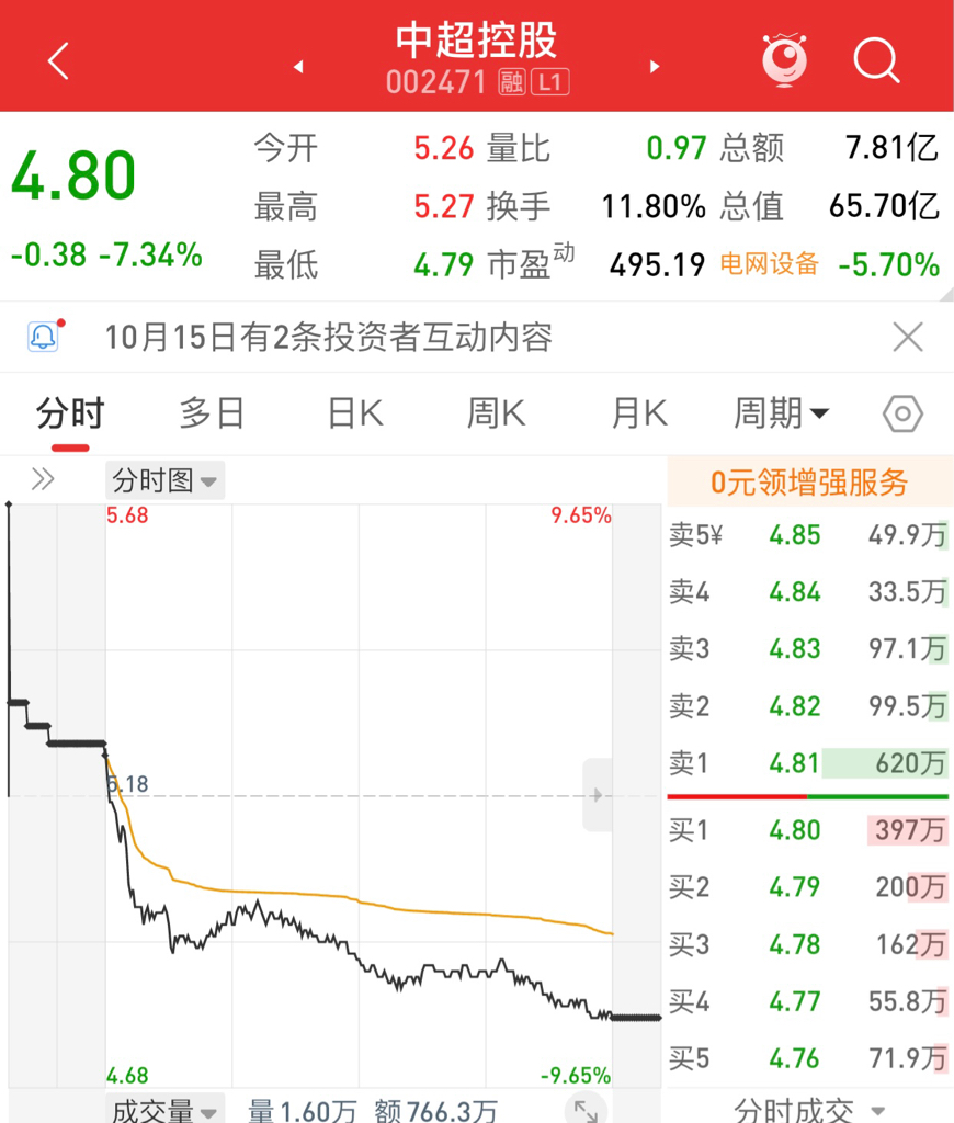 $中超控股(SZ002471)$ 两个月前他就是这种操作,每天大单托盘大单压盘,还是那句话好股票好公司市值早都已经翻倍了,只有辣几跟跌不跟涨