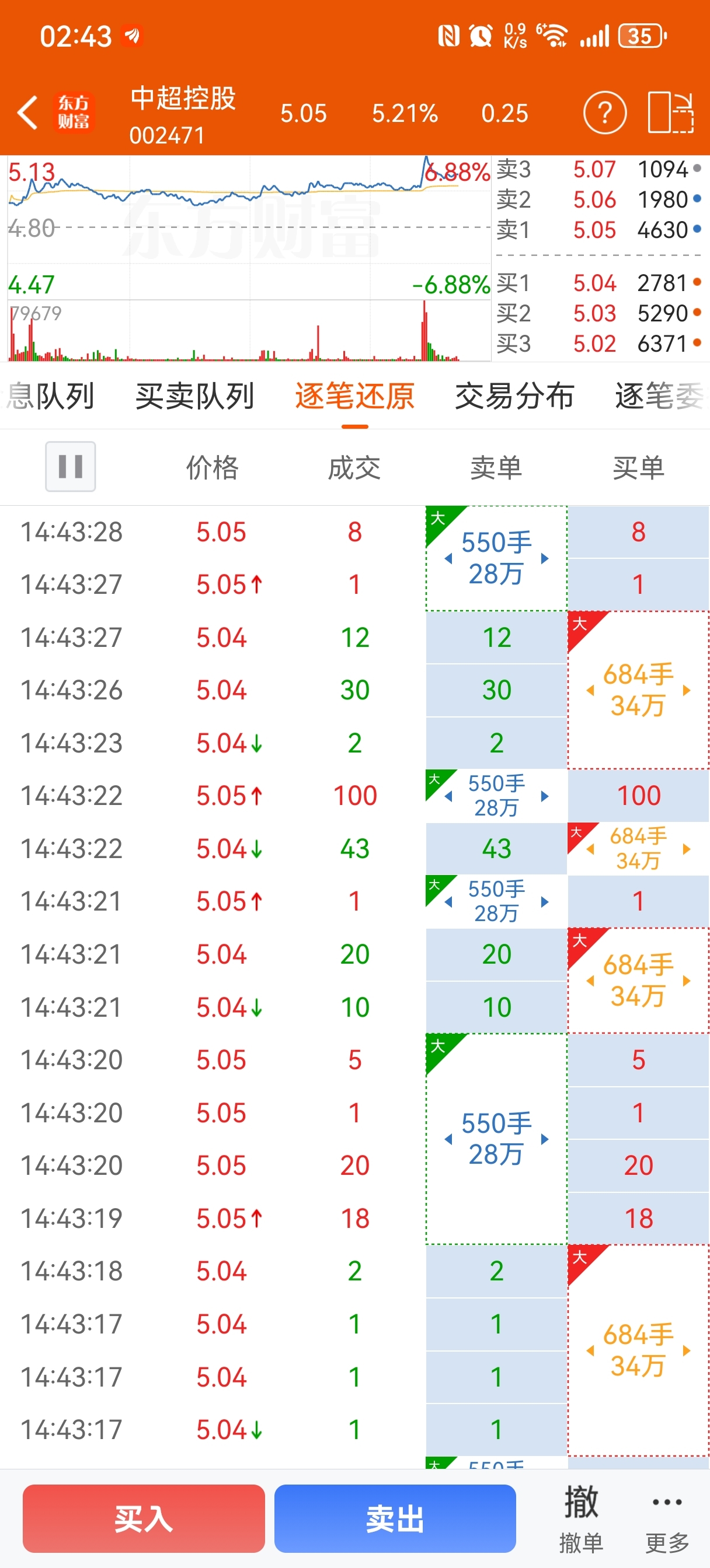 $中超控股(SZ002471)$ 我是不是看到了主力?