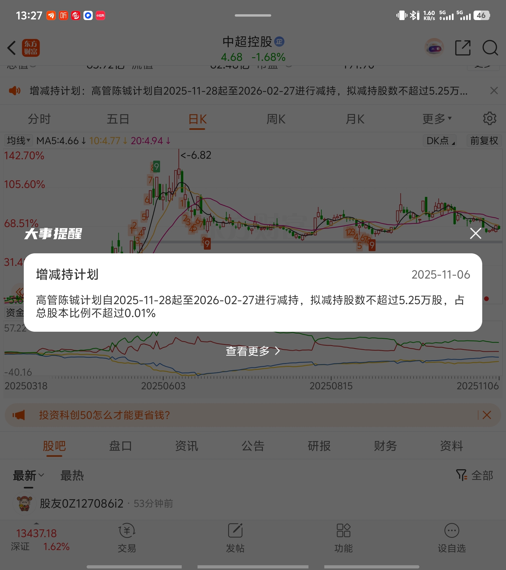 $中超控股(SZ002471)$ 五万股,把散户智商按在地板上摩擦