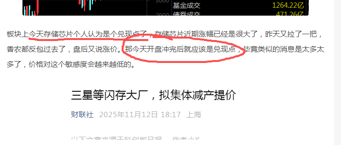 题材上周五存储芯片跌得是最狠的,可大家还记得周四早上文哥的文章是怎么说的吗?文哥说周四存储芯片是个兑现点,开盘冲完后得跑。回过头看周五的存储芯片是怎么样的?低开低走,敢在周四追高的全部被埋,极致的负反馈,同有佰维兆易创新等等,数不完,根本数不完。