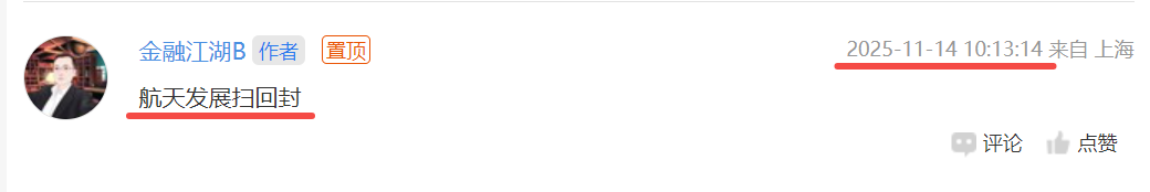 航天发展:周五一度比较痛恨这个烂板的,真的是稀巴烂,到最后才竞价封住。这个是近3年的最高成交量了,该有的套牢盘全部是解套了,按照常规动作,它今天收跌的概率是蛮高的,当然期间冲高过程还是有的,但是中途出了个韭菜苗这个动物,那这个东西就有点意思了,航天发展可是真正根正苗红的军工股,目前就等于是领先一个身位,如果军工今天爆发那航天发展就妥妥的连板,甚至如果说市场今天要推军工,那航天发展就是一字板,最差也是大高开秒板,反正不管怎么说溢价是稳了。准备好吃肉了吗兄弟们?没同车的兄弟小关点上,今后的大肉就能与文哥同车!$航天发展(SZ000547)$