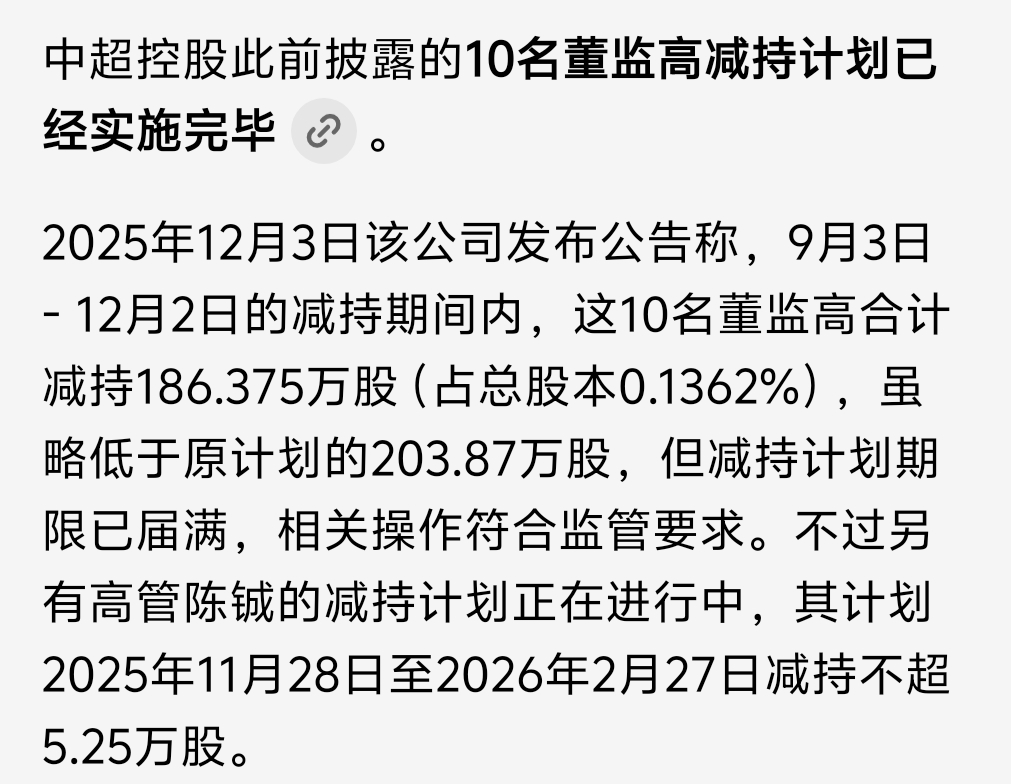 $中超控股(SZ002471)$ 10名高管啊,终于减持完毕了,跌了三四个月,不知道减持的筹码谁拿走了,散户么!