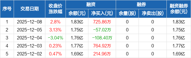 中超控股:融资净买入725.86万元,融资余额1.83亿元(12-08)