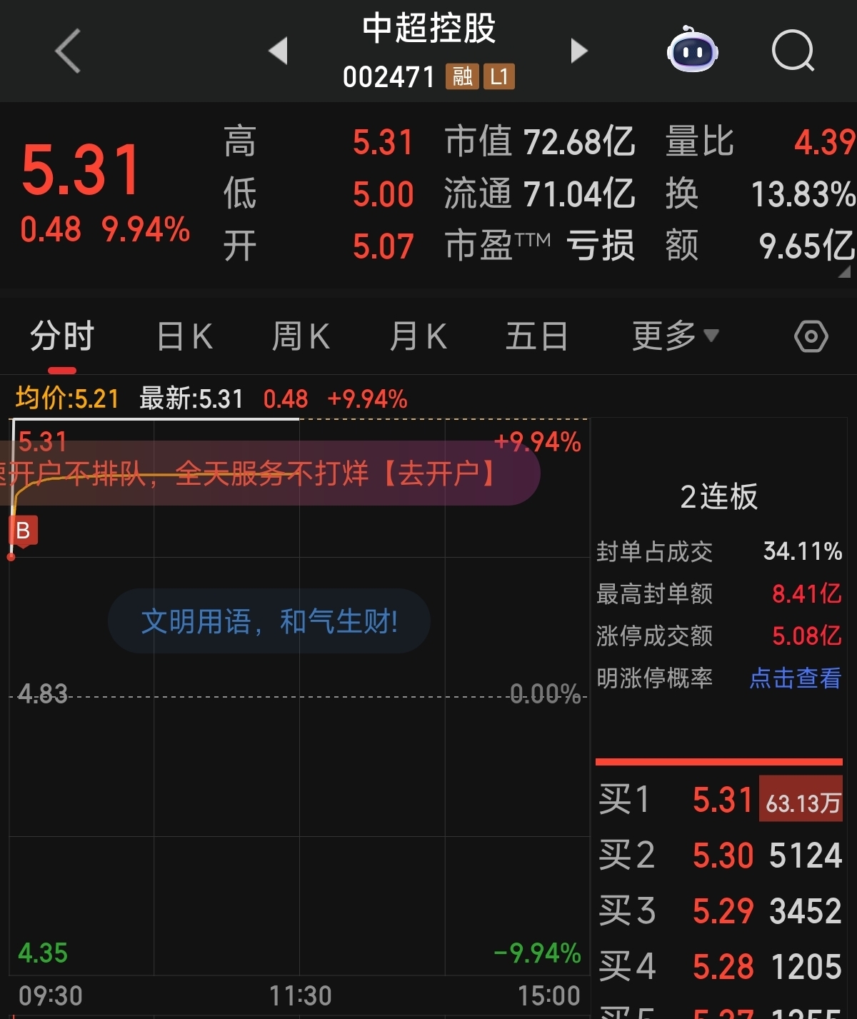 $中超控股(SZ002471)$ 这行情不好做啊兄弟们~
