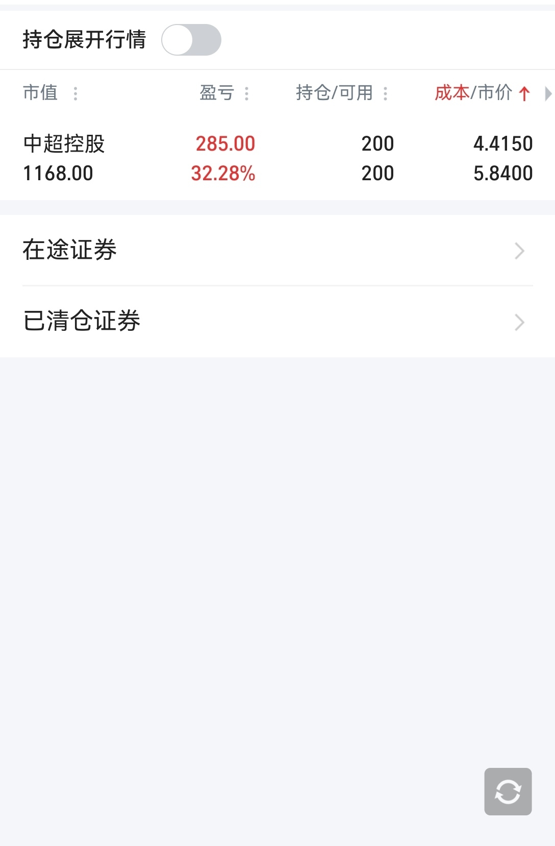 $中超控股(SZ002471)$ 拿千把块钱,当做上班消遣时间的工具,时不时观察一下各个股票的走势,看到中超就进了200股,嘿,你猜怎么着,还真让我看对了
