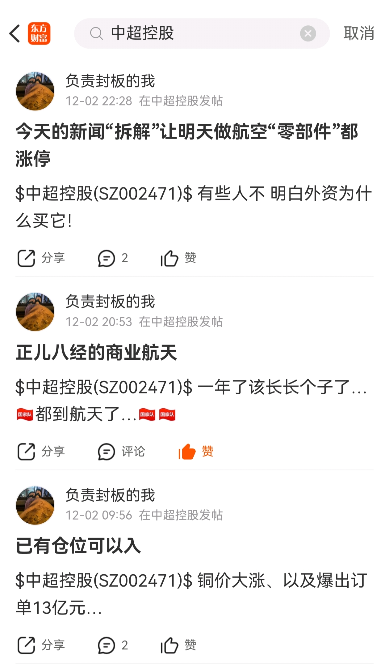 温馨提示: 1.根据《证券法》规定,禁止编造、传播虚假信息或者误导性信息,扰乱证券市场;2.用户在本社区发表的所有资料、言论等仅代表个人观点,与本网站立场无关,不对您构成任何投资建议。用户应基于自己的独立判断,自行决定证券投资并承担相应风险。《东方财富社区管理规定》
