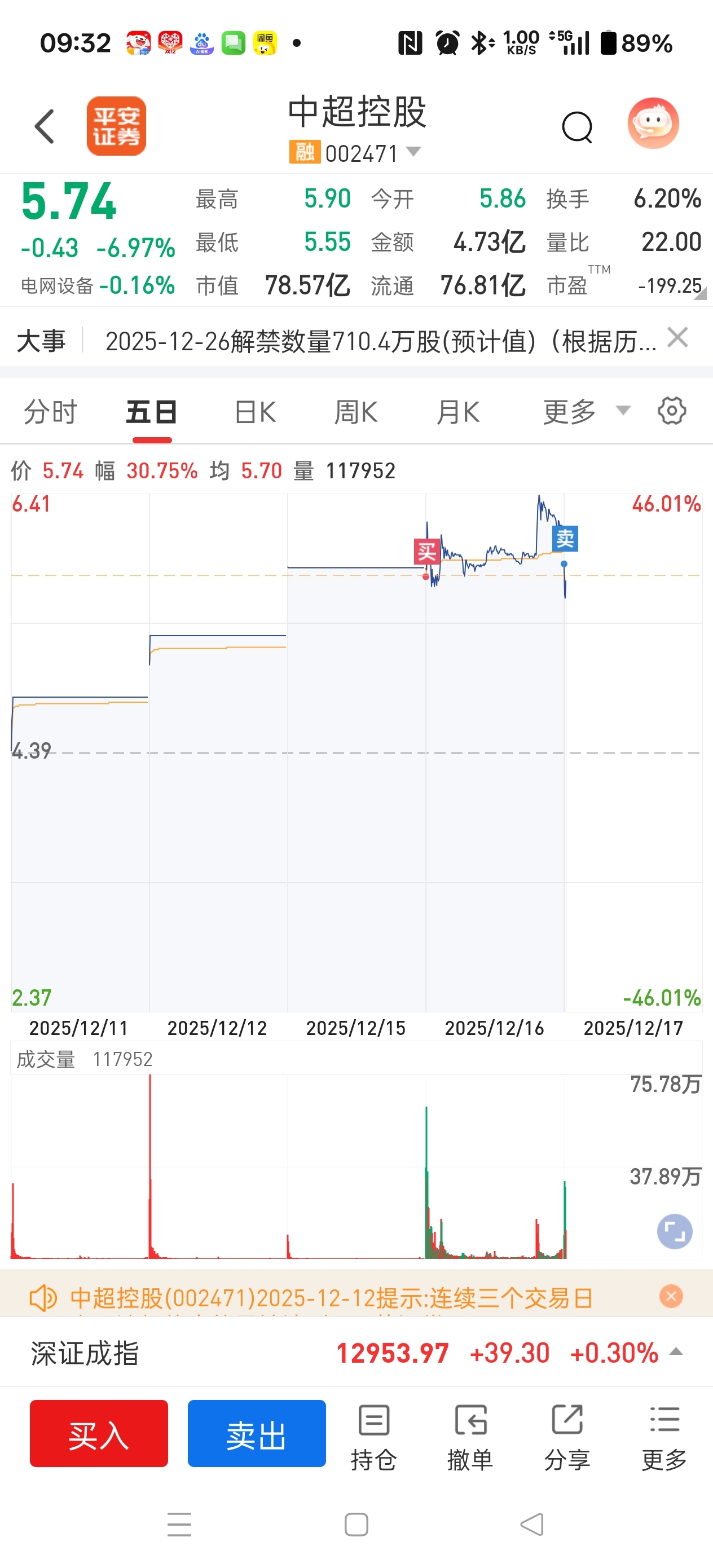 $中超控股(SZ002471)$ 果然被猜对了,昨日买一和买二是量化马甲,开盘最高点卖出。每股还赚1毛钱。0.17%杀入华菱,吃大肉