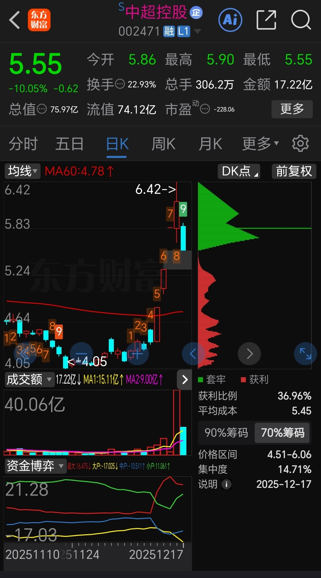 $中超控股(SZ002471)$