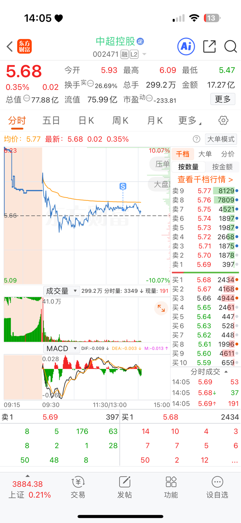 $中超控股(SZ002471)$ 其实怪不了主力,是我自己贪了,昨天7个点没跑,今天7个多点也没跑,非要最后看不到希望了再割肉,自己贱怪谁,通过这次的经验吸取教训了,在里面的小散能跑赶紧跑吧,下周一走下跌趋势