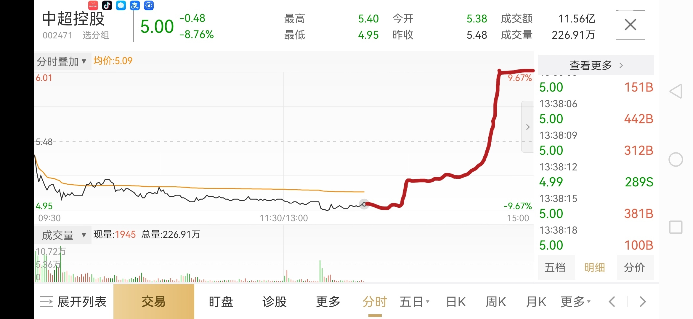 $中超控股(SZ002471)$ 把散户兄弟砸美了,散户兄弟套死了………赶紧买,尾盘拉涨停一字板,………
