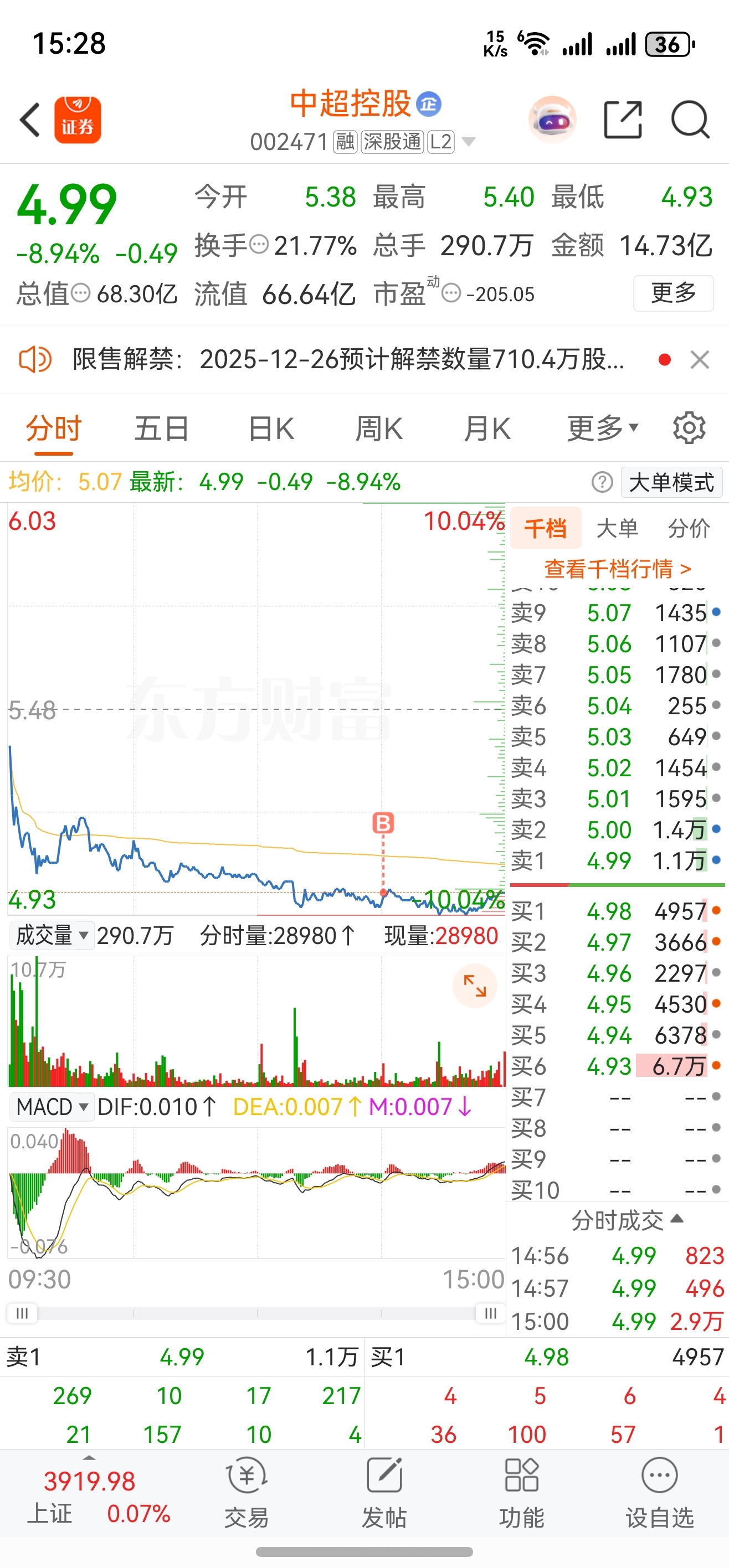 $中超控股(SZ002471)$ 今天尾盘忍不住进了。策略:明天唯一格局就是开盘高开上板就留着。其他的情况一律割肉