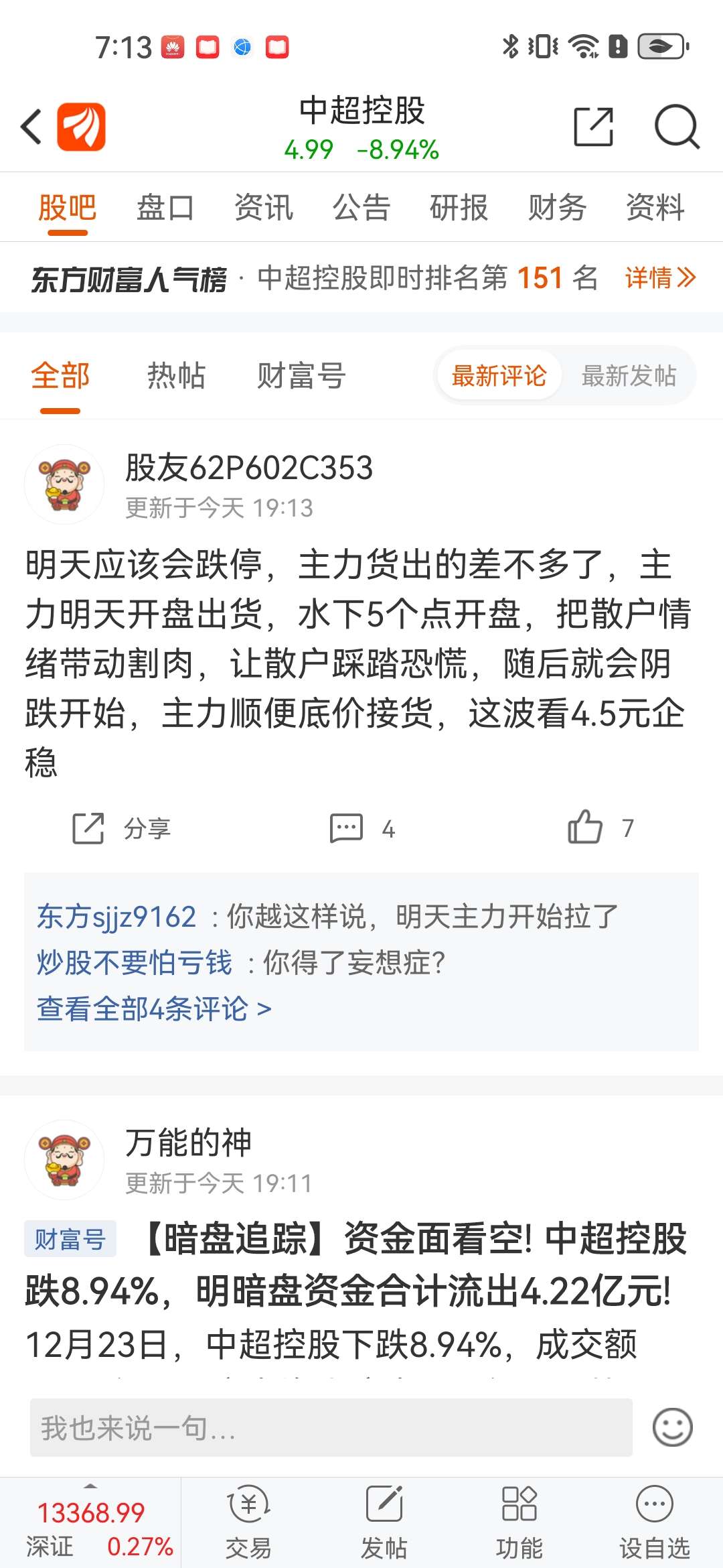 温馨提示: 1.根据《证券法》规定,禁止编造、传播虚假信息或者误导性信息,扰乱证券市场;2.用户在本社区发表的所有资料、言论等仅代表个人观点,与本网站立场无关,不对您构成任何投资建议。用户应基于自己的独立判断,自行决定证券投资并承担相应风险。《东方财富社区管理规定》