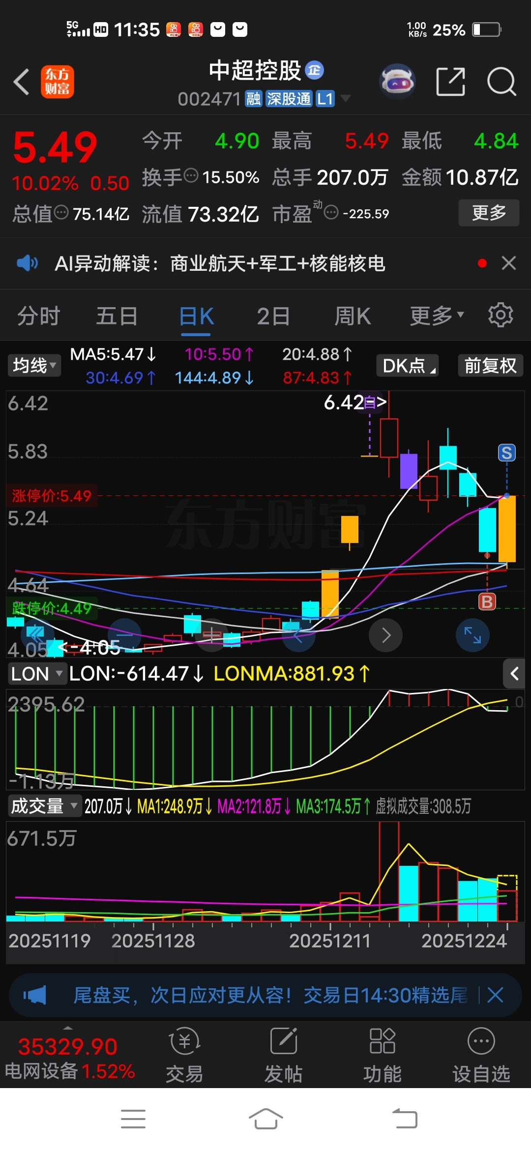 $中超控股(SZ002471)$ 我卖掉一只涨停的,又买了只又要涨停板了,今天我可能也许是赚两个涨停板