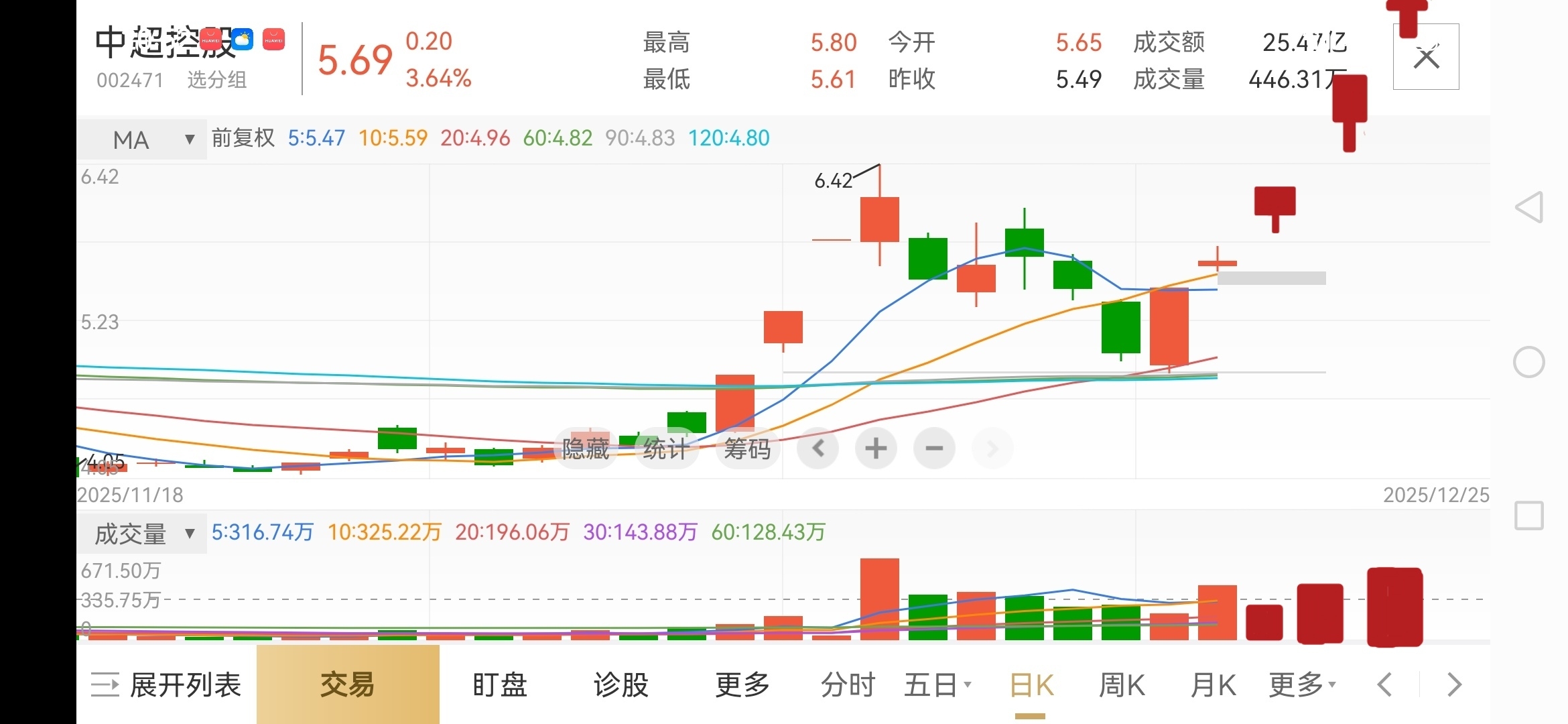 $中超控股(SZ002471)$ 洗盘结束了,应该主升浪开始了………今天筹码对换高位换手,浮筹清洗干净了………大家看我画的怎么样