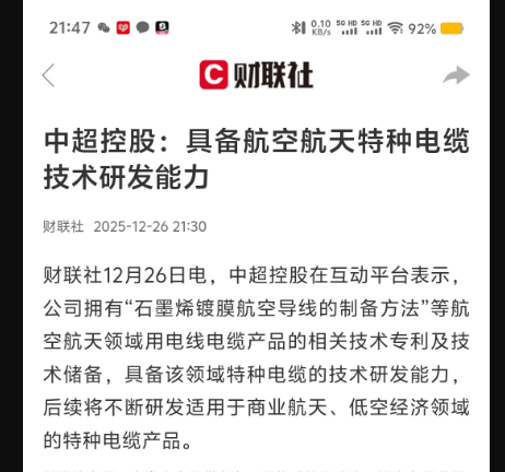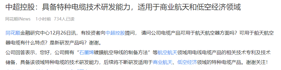 石墨烯镀膜航空电缆,还真新鲜!期待,一字板,走起!