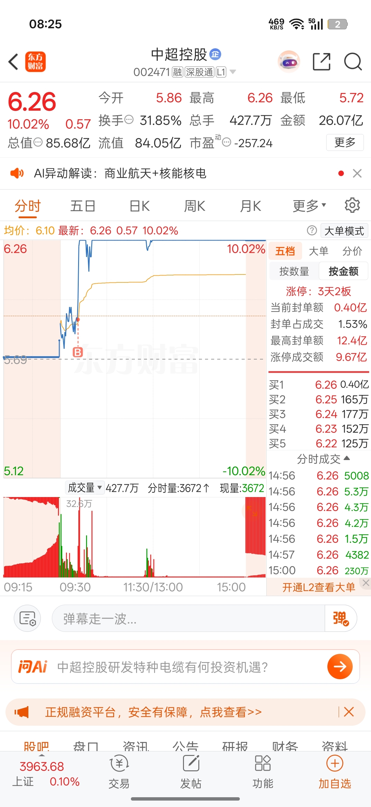 $中超控股(SZ002471)$ 什么情况热度这么高 星期一不会要死吧