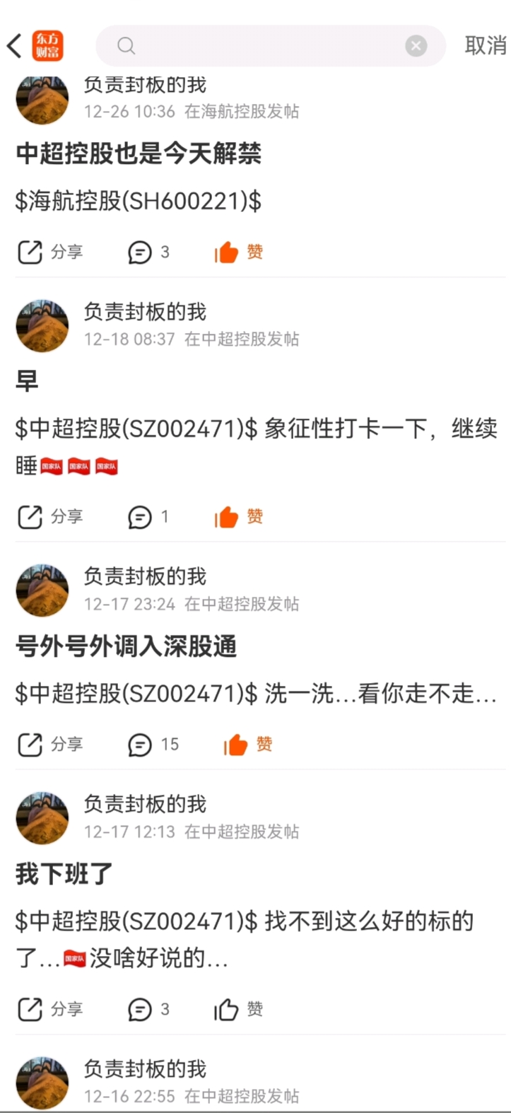 温馨提示: 1.根据《证券法》规定,禁止编造、传播虚假信息或者误导性信息,扰乱证券市场;2.用户在本社区发表的所有资料、言论等仅代表个人观点,与本网站立场无关,不对您构成任何投资建议。用户应基于自己的独立判断,自行决定证券投资并承担相应风险。《东方财富社区管理规定》