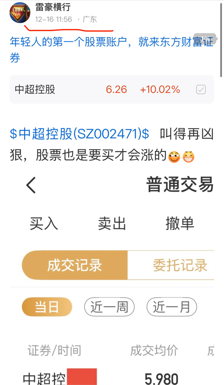 $中超控股(SZ002471)$ 我,我,我,悟道了,现在我才真正明白,原来只要我买入,就能成为龙头,就能冲人气第一……主力天天抄作业,我也想低调,但实力不允许,等下打电话给东财,让他们建一个雷子概念