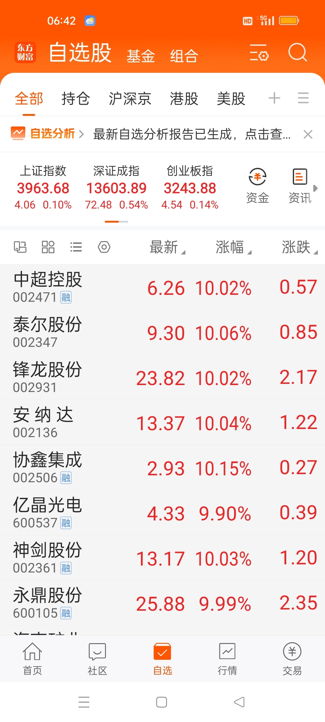 $中超控股(SZ002471)$ 受不了了,在洋河躲过了牛市,不仅躲过还亏钱。今天打板。选出8支每支买一万元试试。大家猜猜哪只会继续涨停?