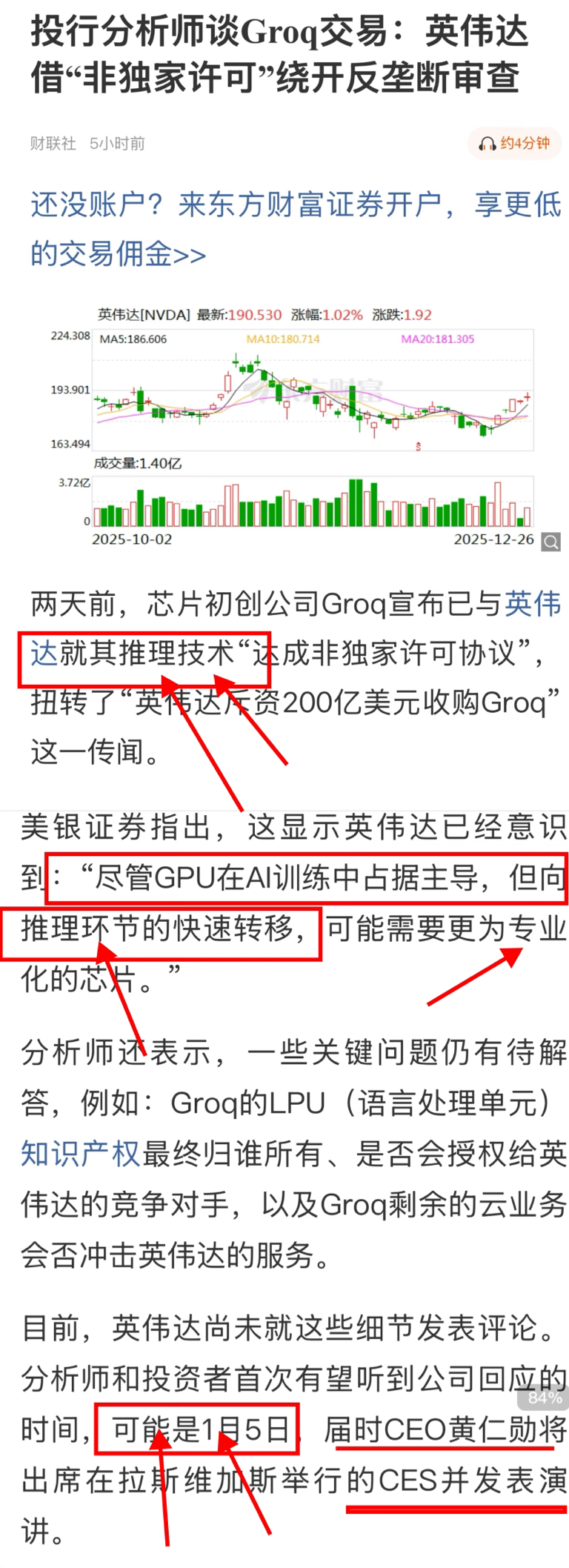 $中超控股(SZ002471)$ 1月份新主线~英伟达TPU推理芯片~绝对爆发~芯片初创公司Groq宣布已与英伟达就其推理技术“达成非独家许可协议”,绕开反垄断调查英伟达可能斥资200亿美元收购Groq”可能在1月5号有望公布