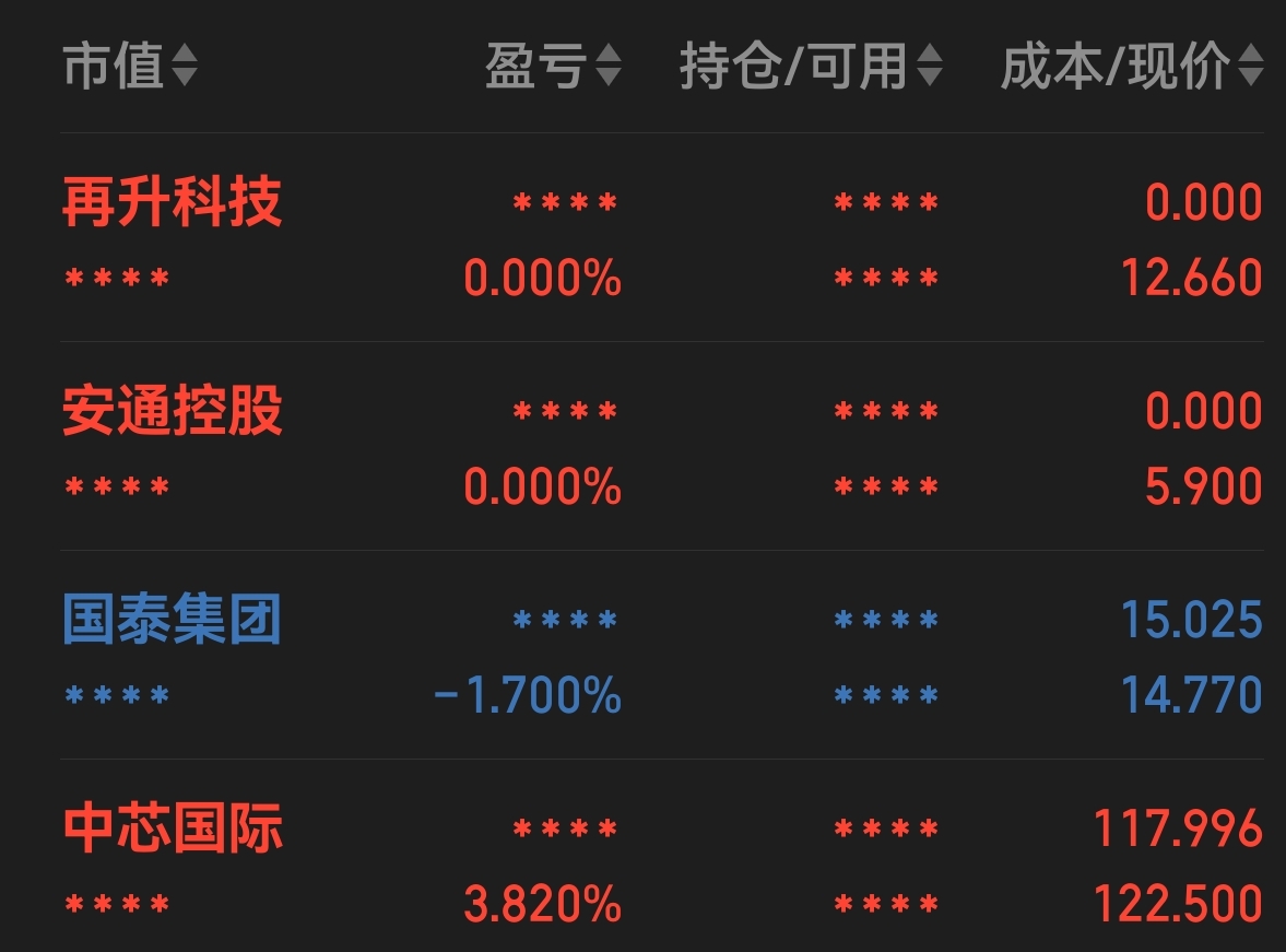 新仓:无。操作:出局再升科技、安通控股。声明:以上仅作为个人实战记录,本人不做任