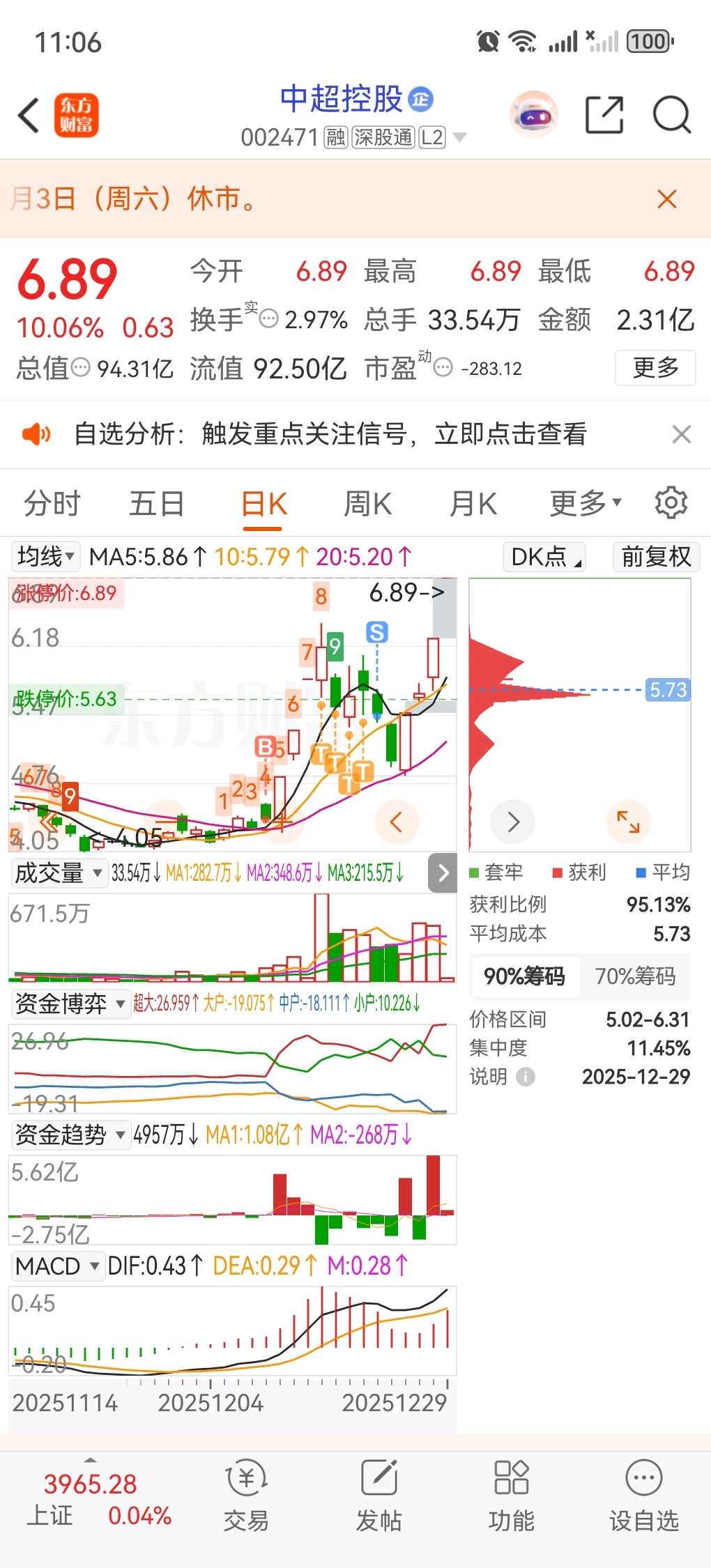 $中超控股(SZ002471)$ 气人,没拿住