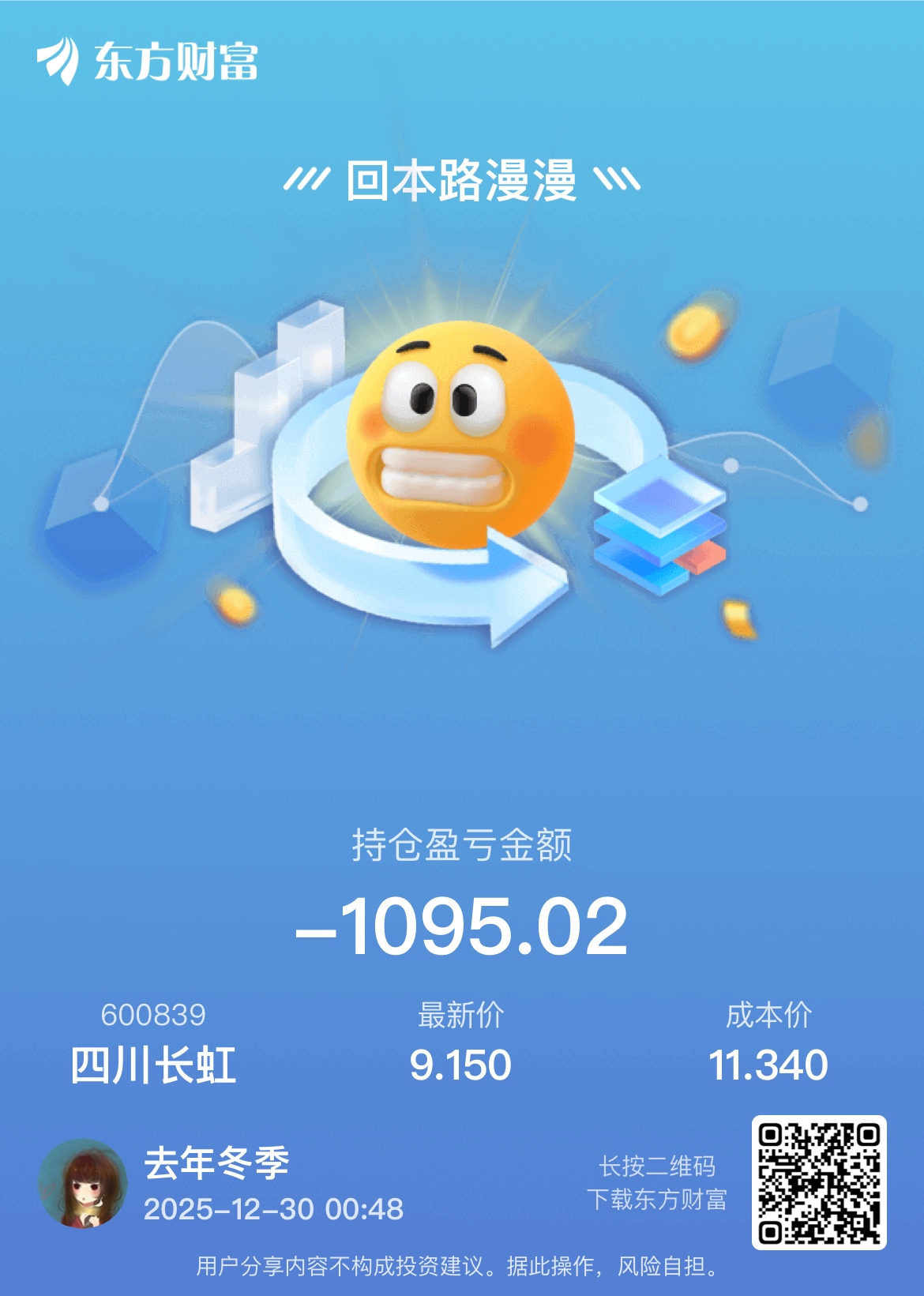 温馨提示: 1.根据《证券法》规定,禁止编造、传播虚假信息或者误导性信息,扰乱证券市场;2.用户在本社区发表的所有资料、言论等仅代表个人观点,与本网站立场无关,不对您构成任何投资建议。用户应基于自己的独立判断,自行决定证券投资并承担相应风险。《东方财富社区管理规定》